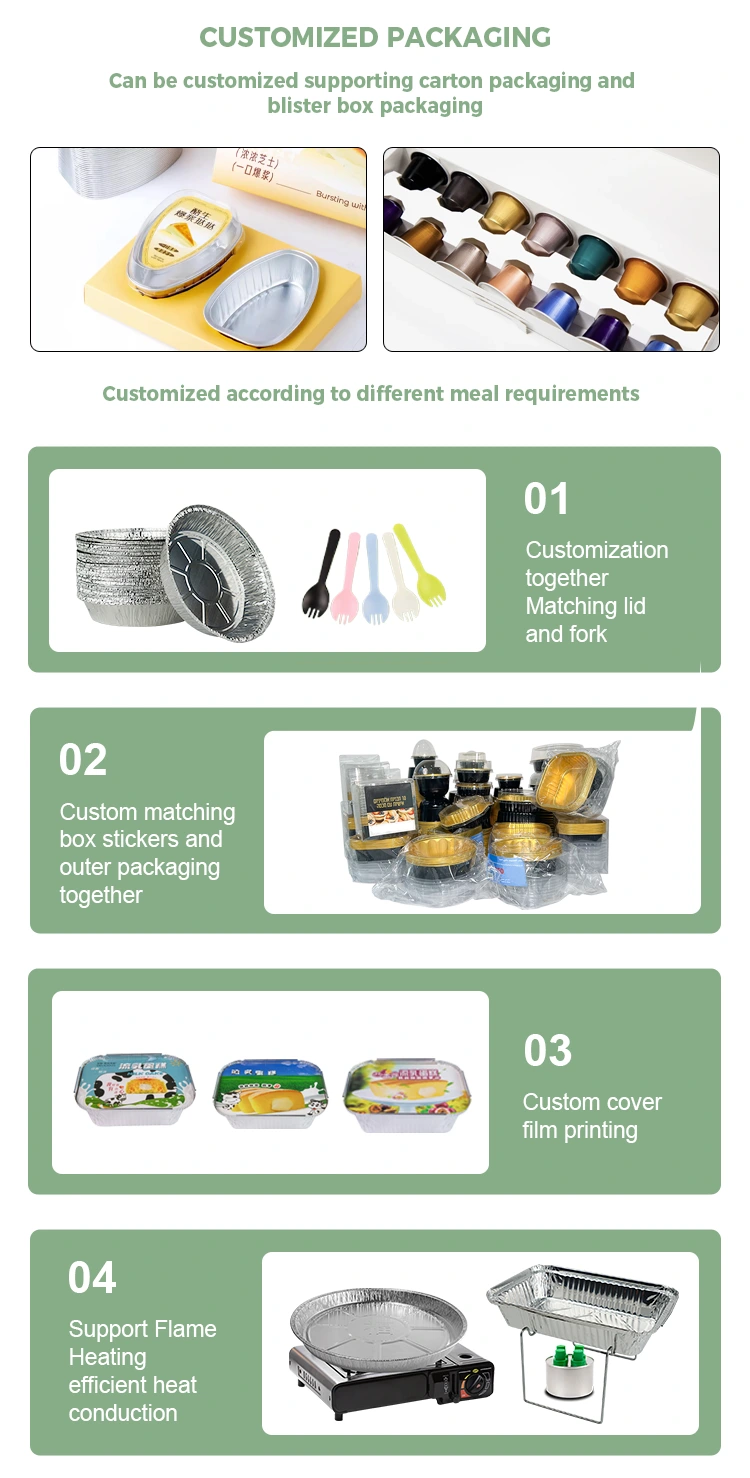 Cásanna lónadóireachta agus miondíola: is féidir siopaí caife, siopaí tae bainne, agus siopaí sú a úsáid chun deochanna beaga agus samplaí a choinneáil. Feabhsaíonn an cumas fíorálainn agus luster mhiotalacha uigeacht an bhranda; is féidir siopaí uachtar reoite agus siopaí milseog a úsáid mar chupáin milseog mion chun liathróidí uachtar reoite a iompar, codanna beaga mousse, etc. Is féidir leis an ábhar alúmanam teocht íseal a choinneáil níos fearr agus seilfré an blas a leathnú. Is féidir le cumais táirgeachta gairmiúla Yunchu Alúmanam Foil tacú le LOGOanna branda a shaincheapadh ar an gcomhlacht cupán, ag cabhrú le ceannaithe aitheantas branda a neartú.