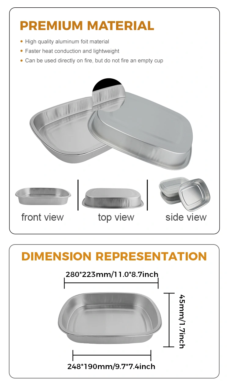 1. Cearnóg airgid lónadóireachta indiúscartha Yunchu Tá airíonna inslithe den scoth ag Coimeádáin Scragall Alúmanam, ag cinntiú go bhfanann an bia te nuair a sheachadtar é. Coinníonn an dearadh séalaithe go héifeachtach taise agus aroma, ag athchóiriú blas agus blas úr agus juicy an bhia mar a bhí sé nuair a bhí sé bruite.