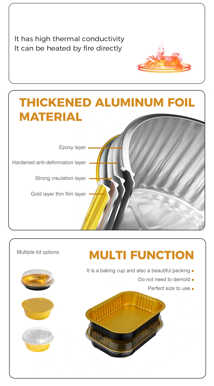 Tá coimeádáin scragall alúmanaim ballaí solais indiúscartha lónadóireachta dronuilleogach indiúscartha soláthróir scragall alúmanaim Yunchu déanta as grád bia. Tá siad próiseáilte agus scagtha go docht agus níl aon bholadh aisteach orthu. Críochnaítear an próiseas táirgthe iomlán i gceardlann glan agus saor ó dheannach gan aon bhreiseáin díobhálacha. Is féidir le rís, feoil, anraith, etc. a bheith i dteagmháil dhíreach freisin. Tá an coimeádán scragall alúmanaim seo tar éis deimhniú grád bia US FD A a rith, ag cloí go docht le caighdeáin FDA. Tar éis tástáil ghairmiúil, tá an méid imirce alúmanaim i bhfad níos ísle ná an teorainn shonraithe agus tá an tástáil suas le caighdeán. Tá tuarascáil tástála foirmiúil faighte againn. Ní hamháin gur féidir é a úsáid i lónadóireacht intíre, ach go gcomhlíonann sé go hiomlán na ceanglais maidir le honnmhairiú thar lear. Ráthaíocht dhúbailte, cibé an mearbhia slabhra é, ealaín phríobháideach, nó díoltóirí bia trasteorann, is féidir é a úsáid Tá sé iontaofa agus is féidir leis na difríochtaí teochta foircneacha a sheasamh go héasca ó -20 ° C go 250 ° C. Ó chuisneoir cuisneoir agus reo-stóráil go téamh micreathonn, bácáil oigheann, agus fiú téamh lasair oscailte (tá gá le huirlisí inslithe teasa), is féidir é a úsáid chun anraith te agus miasa te a phacáistiú le haghaidh éirí amach. Fiú má choinnítear te ar feadh i bhfad é, ní bhogfaidh an coimeádán ná ní dhífhoirmfidh sé, ná ní leáfaidh sé ná ní tháirgefaidh sé gáis Dhíobhálacha; tar éis do thomhaltóirí an bia a fháil, ní gá dóibh an coimeádán a athrú, ach é a chur go díreach isteach san oigheann micreathonn le haghaidh téimh. Ina theannta sin, stiúrann sé teas go cothrom, mar sin ní bheidh aon róthéamh áitiúil nó bia á ghabháil le linn téimh. Is féidir leis blas an bhia a choinneáil chomh fada agus is féidir. Cibé an rís bácáilte, stews, nó barbeque nó táirgí leathchríochnaithe bácáilte, tá sé oiriúnach le haghaidh pacáistiú.