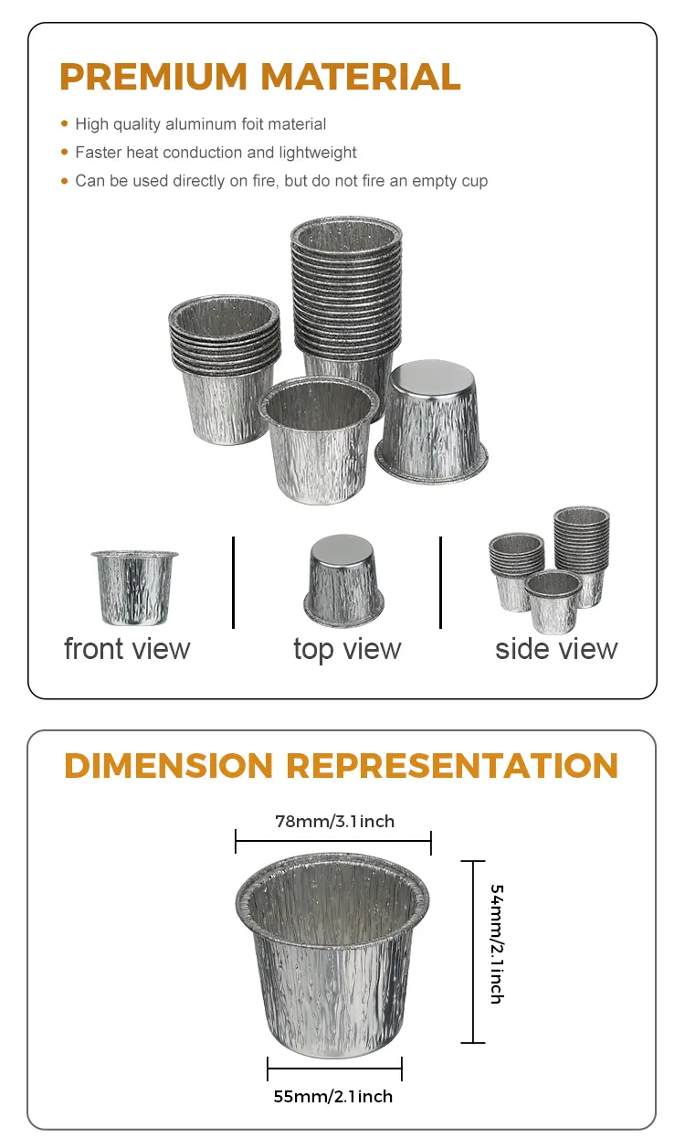 Tá coimeádán scragall alúmanaim airgid cupán císte babhta indiúscartha Yunchu Scragall Alúmanam Monaróir déanta as scragall alúmanaim ard-íonachta de ghrád bia. Tá tástáil dhian ar cháilíocht déanta air agus níl aon bholadh ná aon bhreiseáin díobhálacha ann. Soláthraíonn teagmháil dhíreach le comhábhair níos mó suaimhneas intinne, ag cosaint gach bite binneas agus sláinte. Cruthaíonn an próiseas scragall alúmanaim tiubhaithe comhlacht cupán diana nach bhfuil sé éasca a dhífhoirmiú nó a bhriseadh. Is féidir é a úsáid le haghaidh fuidrimh císte éagsúla, mousse, maróg agus comhábhair eile. Is féidir leis teocht ard suas le 250 ° C a sheasamh agus friotaíocht íseal teochta suas le -20 ° C d'oighinn, cuisneoirí, friochtáin aeir agus fearais eile. Is féidir é a oiriúnú go maith do bhácáil, cuisniú, agus reo. Ní gá an bosca scragall alúmanaim a athsholáthar agus níl an iomarca céimeanna tedious ann. Tá an dearadh babhta clasaiceach, an comhlacht cupán cruinn agus réidh, agus níl aon mhaisiúchán breise ag teastáil ón luster miotalach airgid a mheaitseáil. Is féidir é a sheirbheáil go díreach tar éis bácála agus beidh éifeacht cur i láthair ag leibhéal an tsiopa milseog aige. Tá béal an cupáin cuachta go mín, rud a fhágann go bhfuil sé réidh do lámh agus gan do lámha a scratáil. Coisceann sé an fuidrimh ó sceitheadh ​​nuair a dhoirttear isteach é, agus is fusa é a scartáil.