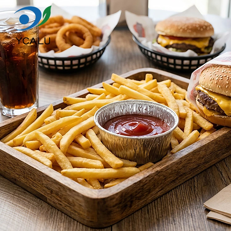 Anlann Babhta Indiúscartha Soláthraí Scragall Alúmanam Yunchu Fryer Airgid Coimeádán Scragall Alúmanam Tá uigeacht tiubh ag scragall alúmanaim airgid agus ní dhéantar damáiste nó dífhoirmiú go héasca. Fiú má tá anlainn tiubh agus comhábhair anraithí ann, is féidir é a choinneáil go daingean gan sceitheadh ​​nó titim. Tá na himill treisithe agus brúite, rud a fhágann go mbeidh siad réidh le teagmháil, ní dhéanfaidh siad do lámha a scratáil, agus go bhfuil siad níos sláine le láimhseáil. Dearadh indiúscartha, caith amach tar éis é a úsáid, rud a shábháil an deacracht a bhaineann leis an gcoimeádán a ghlanadh. Ní hamháin gur féidir leis an éifeachtúlacht a fheabhsú ach freisin an timpeallacht a choinneáil glan agus slachtmhar i gcásanna mar phacáistiú éirí amach, siopaí lónadóireachta, campáil agus picnicí. Thairis sin, tá an t-ábhar scragall alúmanaim in-athchúrsáilte, glas agus neamhdhíobhálach don chomhshaol, agus ní bheidh sé ina chúis le ró-ualach comhshaoil ​​má dhéantar é a chaitheamh tar éis é a úsáid, ag cur san áireamh áisiúlacht agus cosaint an chomhshaoil.