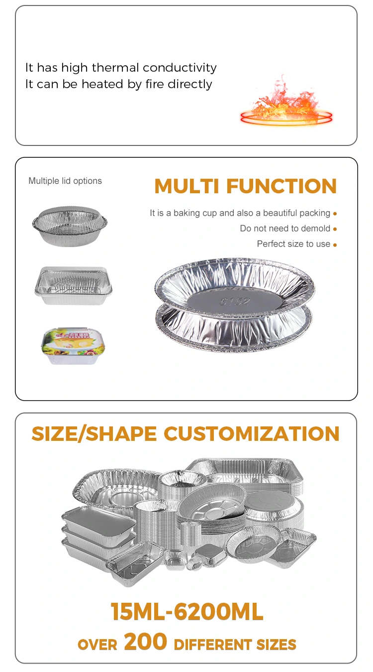 Gnéithe: Múnlú aon phíosa tiubhaithe agus frithsheasmhach in aghaidh bácáilte, ag glacadh le hábhar scragall alúmanaim grád teagmhála bia, bí cinnte go dtiocfaidh sé i dteagmháil le bia, nach bhfuil sé éasca é a dhífhoirmiú agus gan sceitheadh, tiús láidir, friotaíocht creimthe, friotaíocht ardteochta.