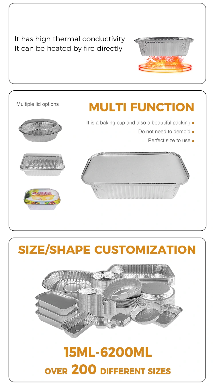 ​Yunchu aluminum foil supplier Rectangular air fryer packing Silver Aluminum Foil Containers, longer thermal insulation, long barbecue aluminum foil container, hygienic and healthy material, can directly contact food, selected high-quality aluminum foil material, reliable product quality, heat preservation, retain the original taste of food, lock the heat of food, enjoy healthy food, large portion loading, no need to clean laboriously, can accommodate Is féidir an chuid is mó de bhia a úsáid le clúdach scragall alúmanaim, scragall alúmanaim taobh amháin, cárta bán taobh amháin. Is é an dromchla scragall alúmanaim ná cruthúnas ola agus uiscedhíonach, agus tá an taobh scragall alúmanaim ag tabhairt aghaidh air nuair a úsáidtear é. Tacaíocht a thabhairt do chomhcheangal scragall alúmanaim is féidir le hordú mórdhíola a sholáthar, saincheapadh priontála patrún a sholáthar, MOQ amháin de 1000 píosa/suas, tá éagsúlacht sonraíochtaí agus samhlacha le roghnú ag an gcoimeádán scragall alúmanaim airgid dhronuilleogach seo, is féidir leat teagmháil a dhéanamh leis an bhfoireann díolacháin chun fiosrú a dhéanamh.