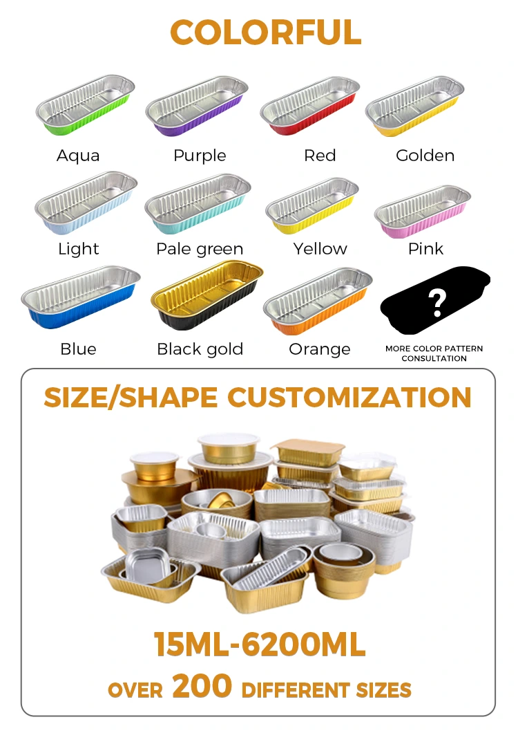 Yunchu aluminum foil supplierRectangular baking cake Smoothwall Aluminum Foil Containers is made of 8011 food-grade aluminum foil material, choose to store in the refrigerator with lid, aluminum foil lid and PET fully transparent plastic lid, cannot be used in air fryer, oven and other equipment, universal design air fryer, oven, steamer can be used with various equipment, can be reused Ní hamháin go méadaíonn an dearadh cuasach agus dronnach ag an mbun cobhsaíocht an táirge, ach tá ról aige freisin i bhfrith-duillín; Feabhsaíonn na stiffeners ar na taobhanna sturdiness an táirge, rud a fhágann go bhfuil sé níos durable, agus ina theannta sin, cuireann an coimeádán scragall alúmanaim dronuilleogach seo dathanna éagsúla ar fáil, ag ligean duit é a shaincheapadh de réir do chuid sainroghanna.