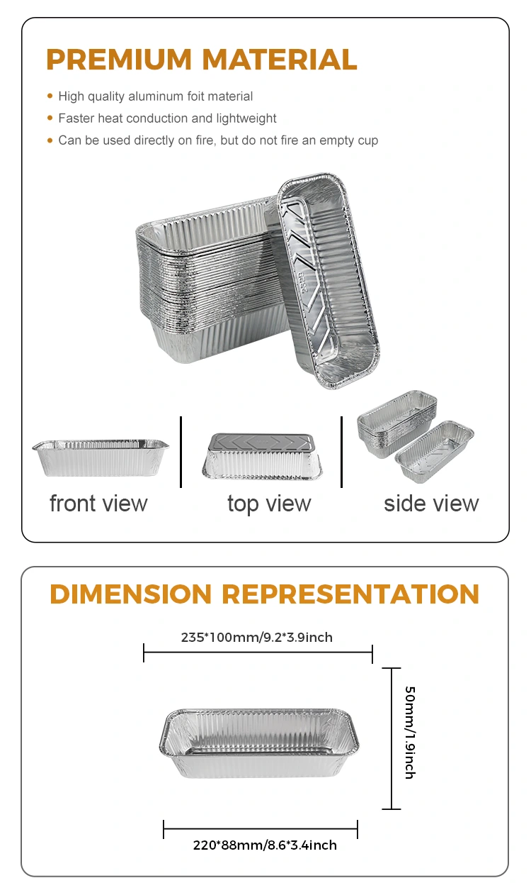 Tá dearadh fadtréimhseach agus frithsheasmhach in aghaidh an tsoláthraí scragall alúmanaim a chuirtear ar fáil ag soláthróir scragall alúmanaim Yunchu a fhanann cobhsaí fiú in aghaidh lasracha oscailte ardteochta, ag cinntiú nach ndéantar damáiste do do chuid delicacies ar bhealach ar bith. Ina theannta sin, tá ár gcoimeádáin deartha go cúramach le rannóga ardaithe a choisceann anraith go héifeachtach ag sileadh amach agus ag an am céanna bia a chosc, ag ligean duit taitneamh a bhaint as gach greim gan stró. Tá imill sleek an choimeádáin deartha chun a bheith taitneamhach ó thaobh aeistéitice de agus feidhmiúil, ag seachaint an baol ciorruithe le linn úsáide. Tá an dearadh imeall fillte isteach níos pearsanta fós, rud a chuireann cosc ​​ar dhónna agus sábháilteacht úsáide á chinntiú. Tráidire aráin dronuilleogach Is féidir le coimeádán scragall alúmanaim airgid a alúmanaim airgid a bheith i dteagmháil dhíreach le bia, ag freastal ar chaighdeáin sábháilteachta bia. Thairis sin, tá ár dtáirgí indiúscartha, ag coigilt na trioblóide glantacháin, agus is féidir an bosca scragall alúmanaim a athchúrsáil freisin chun tomhaltas glas a bhaint amach. Déanann scragall alúmanaim Yunchu monatóireacht dhlúth ar gach próiseas táirgthe chun a chinntiú go gcomhlíonann na táirgí go léir caighdeáin sábháilteachta náisiúnta. Tá roinnt deimhnithe idirnáisiúnta faighte againn, lena n -áirítear an Teastas Sábháilteachta Náisiúnta le haghaidh Ábhair Pacáistithe Bia Alúmanaim, Deimhniú ERP na Gearmáine, Deimhniú SGS an AE, agus deimhniú ISO9001.