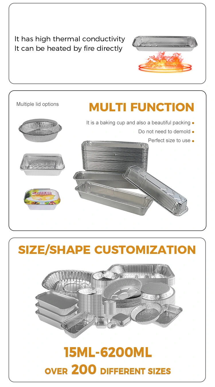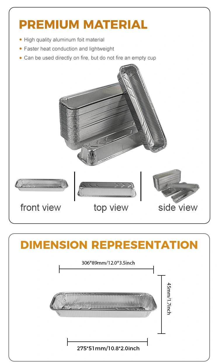 Yunchu Aluminum Foil Supplier Rectangular bread tray baking Silver Aluminum Foil Containers, a variety of heating methods, you can enjoy the joy of baking at any time, more effective insulation and freshness, upgraded and thickened design, selected high-quality materials for environmental protection and hygiene, food-grade aluminum foil, integrated molding is more reliable, curled edge design, fast and uniform heat conduction, Ní furasta bácáil a dhéanamh ar an mbun, is fearr an bia a dhíspreagadh, úsáidtear an táirge go forleathan i réimse na barbeque agus an bhácáil, atá oiriúnach go háirithe do champáil, bácús, stallaí barbeque, seachadadh beir leat agus bialanna sushi agus ócáidí eile. Tá sé deartha chun freastal ar riachtanais phraiticiúla formhór na dteaghlach agus na siopaí.