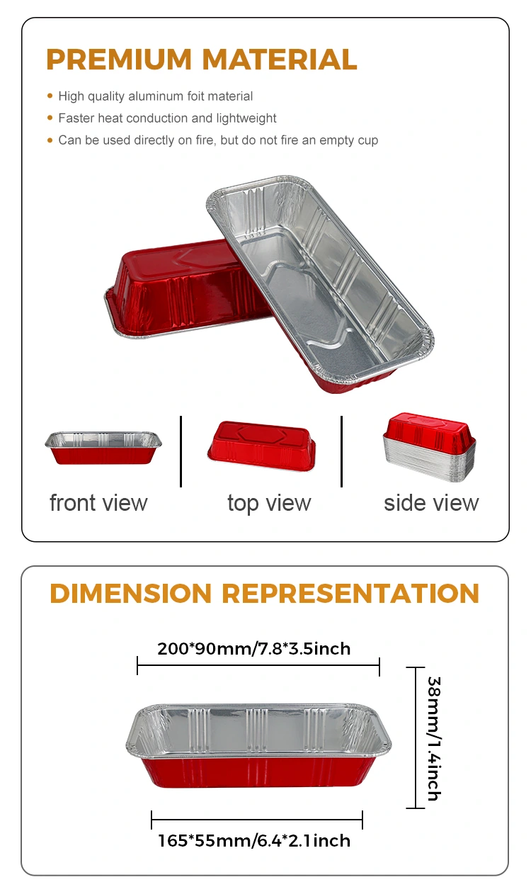 Soláthraíonn Yunchu Scragall Alúmanam duit lónadóireacht dronuilleogach dearg bácúis ard-chaighdeán Coimeádáin Scragall Alúmanam Airgid, atá deartha le bheith marthanach agus teas-resistant, is féidir leo teas a iompar go cothrom chun cosc ​​a chur ar charring, agus tá séalaithe láidir acu chun úr a choinneáil.