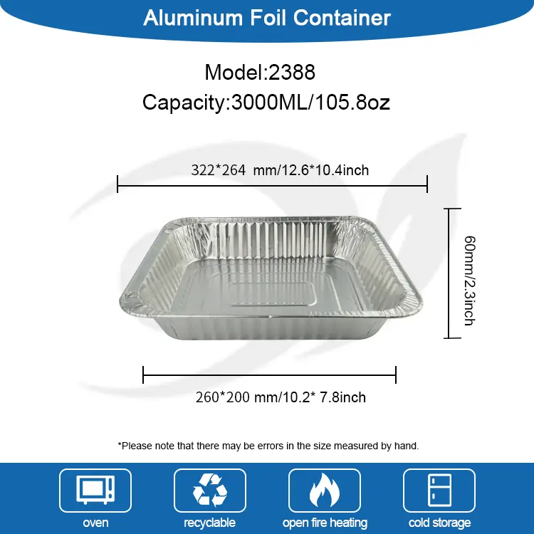 Soláthraí Alúmanaim Alúmanaim Yunchu Soláthraí Takeaway Dronuilleach Pláta Tuirc Pláta Silver Scagem Alúmanaim. Déanta as 8011 ábhar grád bia, is féidir an coimeádán a úsáid le haghaidh turcaithe, babhlaí torthaí, iasc grilled, ciarsúir te, sceanra agus níos mó, le bun cuasach agus dronnach le haghaidh friotaíocht duillín feabhsaithe. Cuirtear stiffeners leis an taobh chun cruas an táirge a fheabhsú. Mar gheall ar an dearadh imeall, tá an coimeádán níos durable, in ann teochtaí arda a sheasamh agus teas a dhéanamh go cothrom, ag cur cosc ​​ar bhia a bheith faoi charred nó ag cloí le linn teasa. Coinnigh te le clúdach, dún an clúdach agus brúigh timpeall chun úire an bhia a chur faoi ghlas. Mar gheall ar an dearadh mór acmhainne tá sé éasca turcaí iomlán a chur in oiriúint.