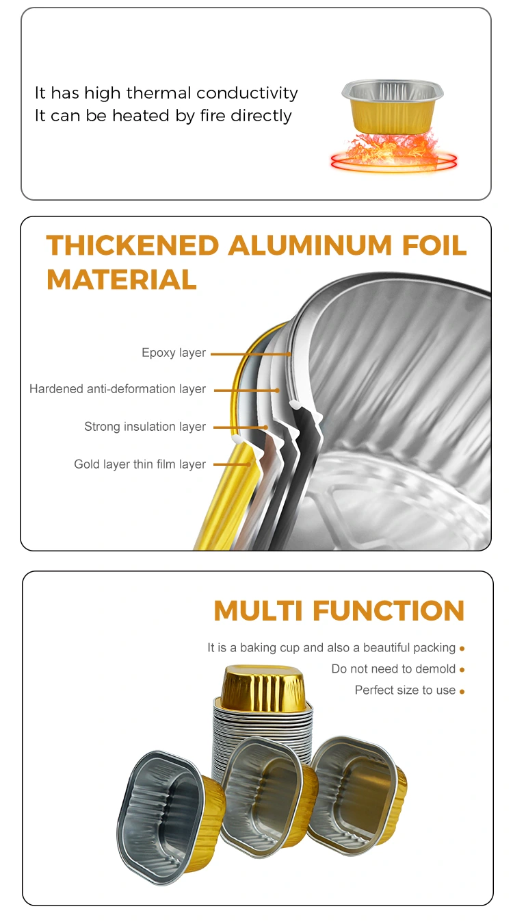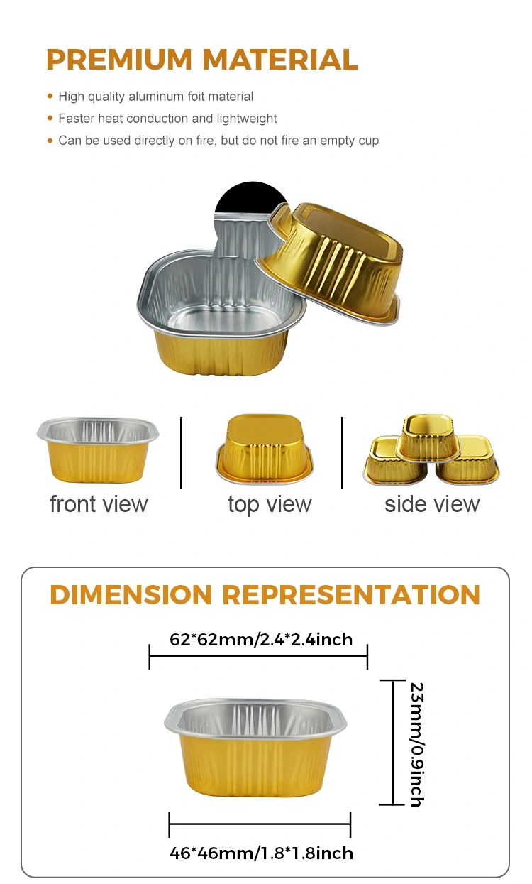 Cupáin bácála milseog Cearnóg Monaróir Scragall Alúmanam Yunchu Is féidir Coimeádáin Scragall Alúmanam Smoothwall a úsáid i friochálaithe aeir, bácála, anlainn, etc. Glacann na cupáin bácála seo dearadh rib athneartaithe speisialta, agus déanann a struchtúr comhlacht cupáin gearr go bhfuil airíonna cuimilte maith acu, ní éasca le duillín, éasca le tógáil agus ní ghortóidh siad lámha agus béal. Tá siad feiliúnach chun éagsúlacht milseoga a dhéanamh lena n-áirítear cupcakes, custards, shortbread, pies, rollaí cainéal, cácaí cáise, custards agus maróga. Soláthraíonn an struchtúr iomaireach seo tacaíocht bhreise agus tá sé oiriúnach go háirithe le húsáid i monarchana bácála tráchtála nó ollmhargaí móra.